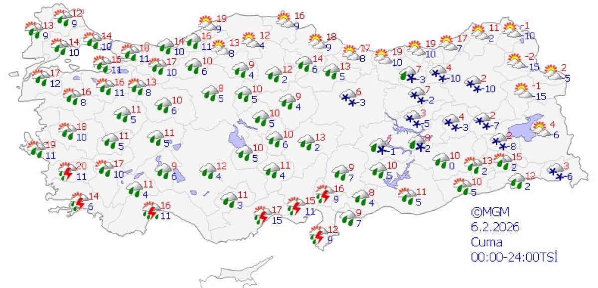 Cuma gününden itibaren hava durumunda değişim sinyalleri başlıyor. Kuzey ve doğu kesimlerde sağanak yağışlar, yüksek kesimlerde ise kar yağışı bekleniyor. Sıcaklıkların hafif bir düşüşle batıda 10-14, doğuda ise 5-10 derece bandına çekileceği tahmin ediliyor.