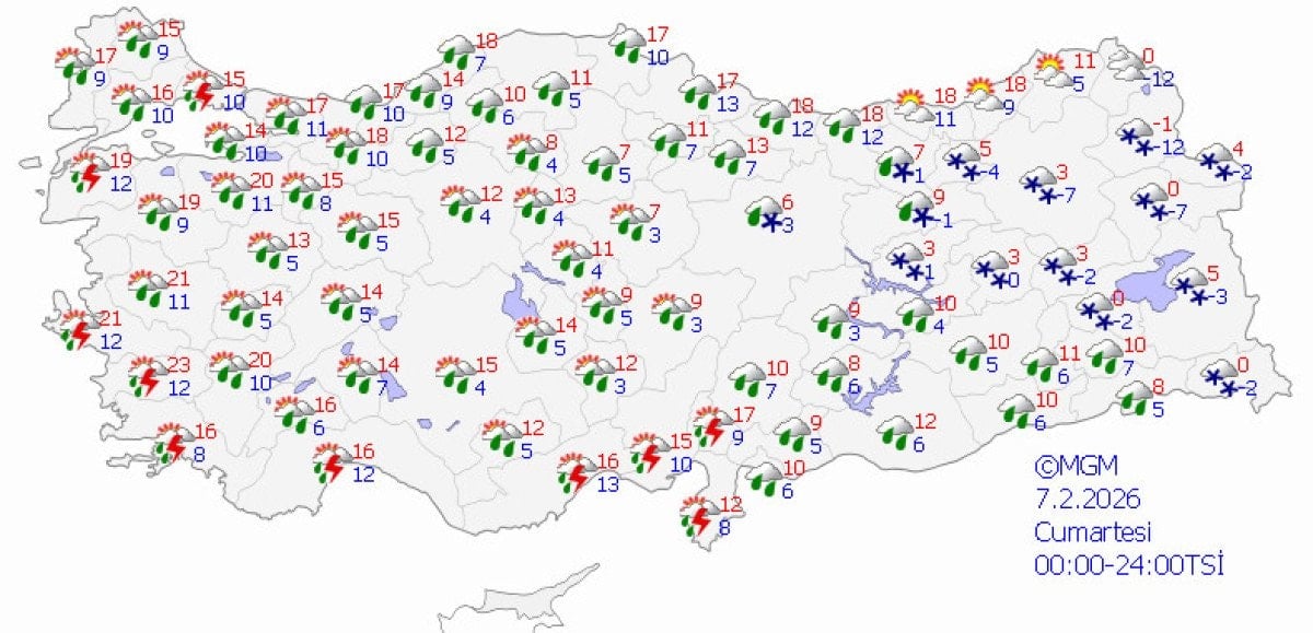 7 Şubat Cumartesi: Marmara ve Karadeniz genelinde gök gürültülü sağanak yağış etkili olacak.