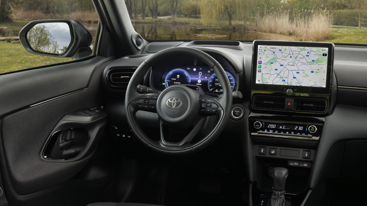 Dış tasarımda yapılan dokunuşlarla Yaris Cross artık daha modern ve keskin bir duruş sergiliyor. Yenilenen ön ızgara, keskinleştirilmiş LED far grubu ve yeni tasarım alaşım jantlar, aracın karakterini ön plana çıkarıyor. İç mekanda ise malzeme kalitesine odaklanılmış; yeni döşeme alternatifleri ve ambiyans aydınlatmasıyla kabin konforu artırılmış durumda.